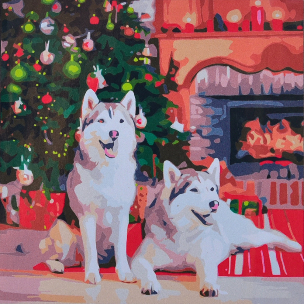 Картина за номерами Хаски під ялинкою 40х40см , в термопакеті, ТМ Стратег, Україна
