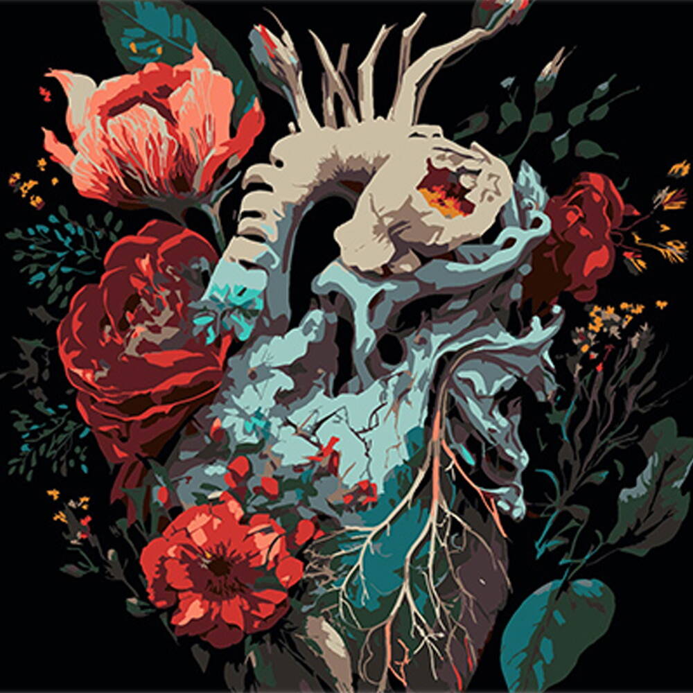 Картина за номерами Квіткова експресія серця на чорному фоні 30х30см, термопакет, ТМ Стратег, Україна