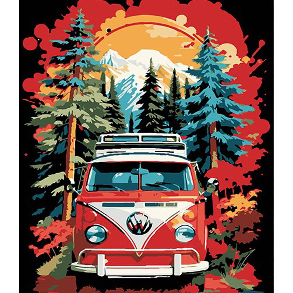 Картина за номерами Фольксваген бус в лісовій гущавині на чорному фоні 30х40см, термопакет, ТМ Стратег, Україна