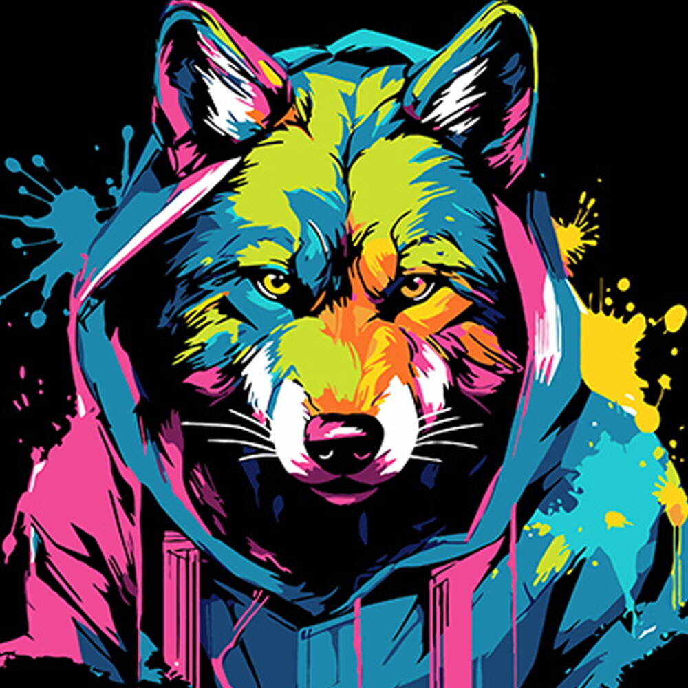 Картина за номерами Яскравий образ вовка на чорному фоні 40х40см, термопакет, ТМ Стратег, Україна