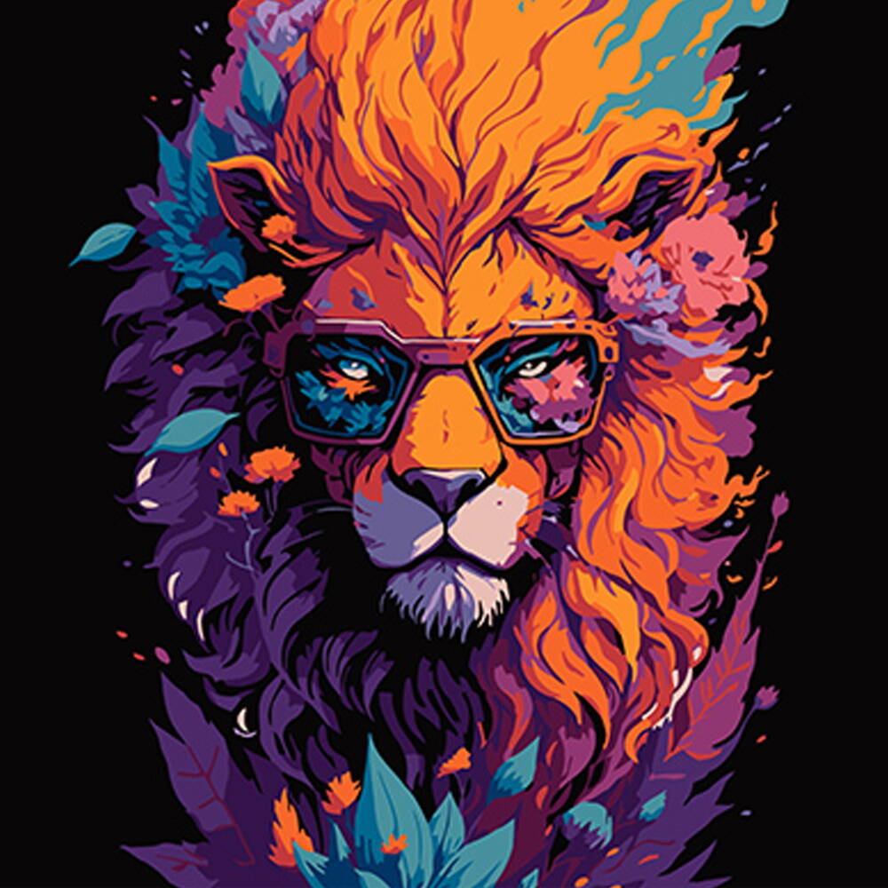 Картина за номерами Кольоровий могутній лев на чорному фоні 40х40см, термопакет, ТМ Стратег, Україна