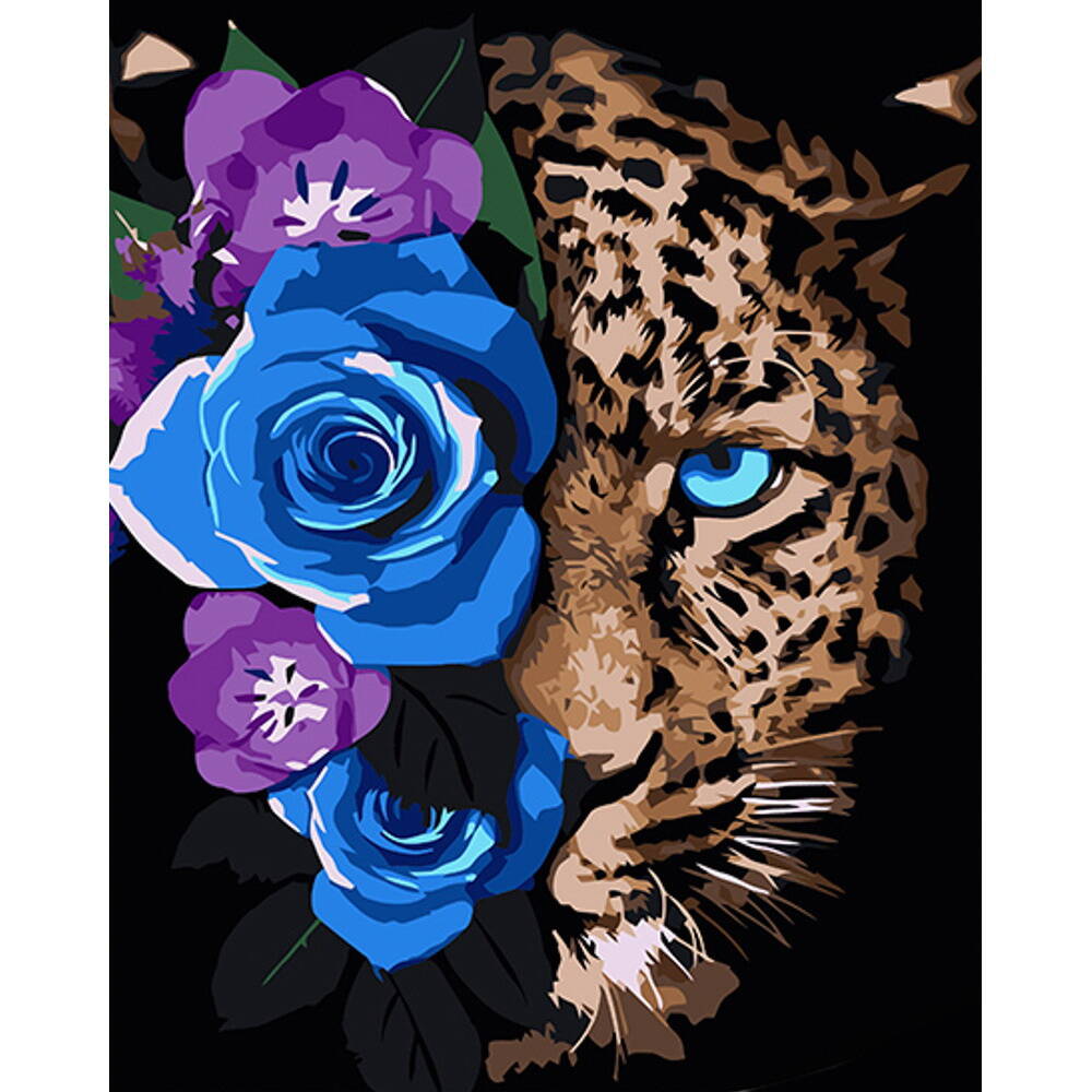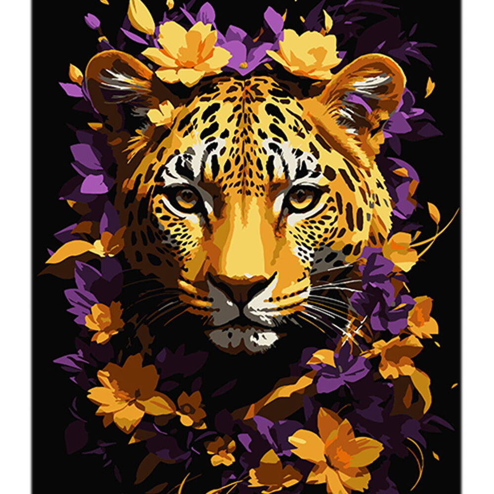 Картина за номерами Леопард у квітах на чорному фоні 40х50см, термопакет, ТМ Стратег, Україна