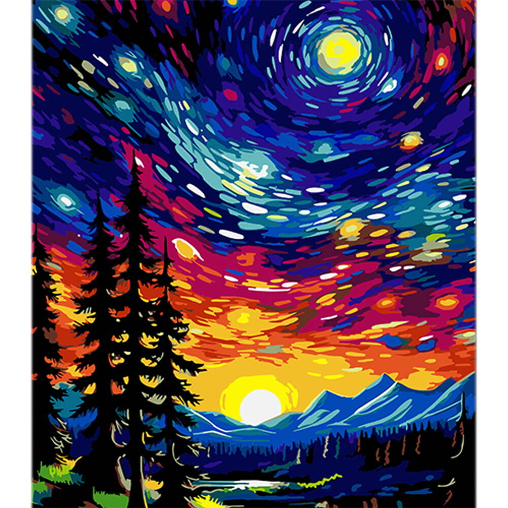 Картина за номерами Ліричний місячний вечір на чорному фоні 40х50см, термопакет, ТМ Стратег, Україна