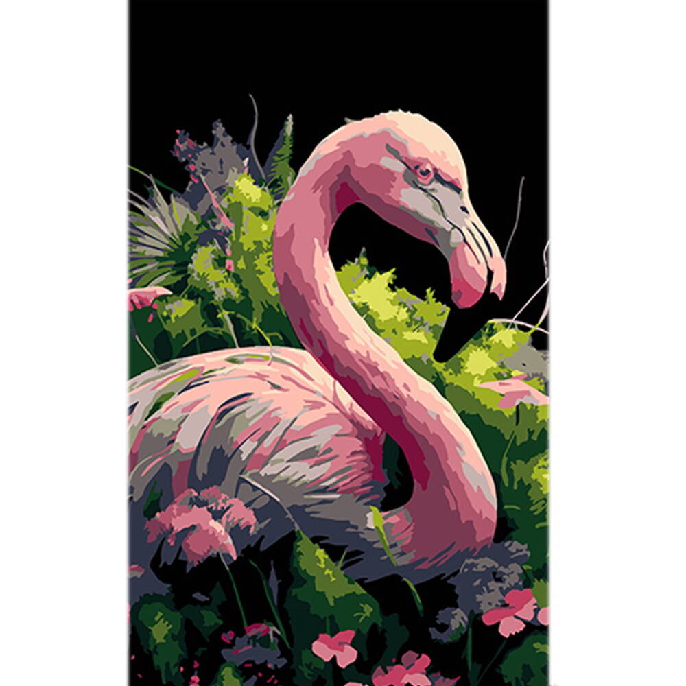 Картина за номерами Фламінго у квітах на чорному фоні 40х50см, термопакет, ТМ Стратег, Україна