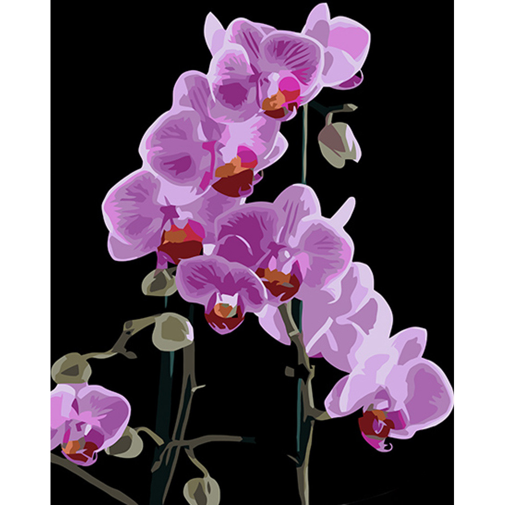 Картина за номерами Вишукана орхідея на чорному фоні 40х50см, термопакет, ТМ Стратег, Україна