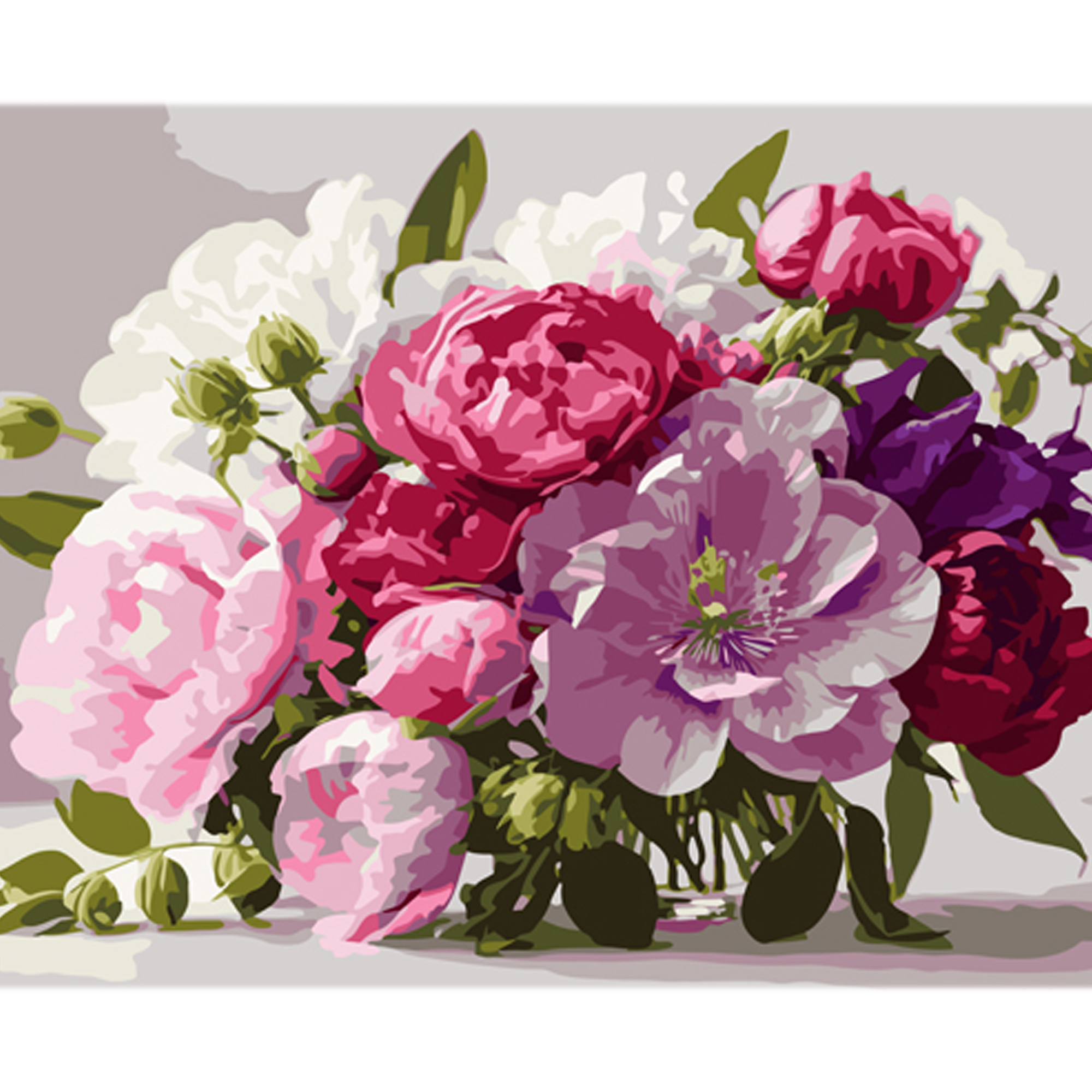 Картина за номерами Барвистий букет півоній на кольоровому фоні 40х50см, термопакет, ТМ Стратег, Україна