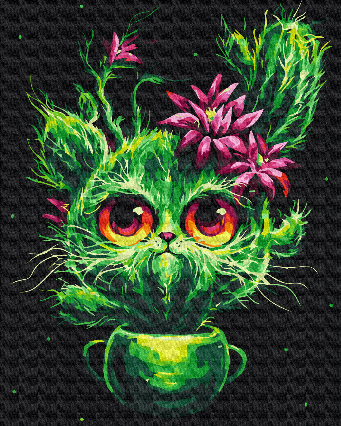 Картина за номерами "Кошенятко кактусятко Маріанна Пащук", в термопакете 40*50см, ТМ Brushme, Україна
