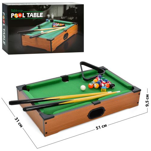 Більярд 51*31*9,5см, дерев'яний, кий, кулі, трикутник, в кор. 52*32*10см (4шт)