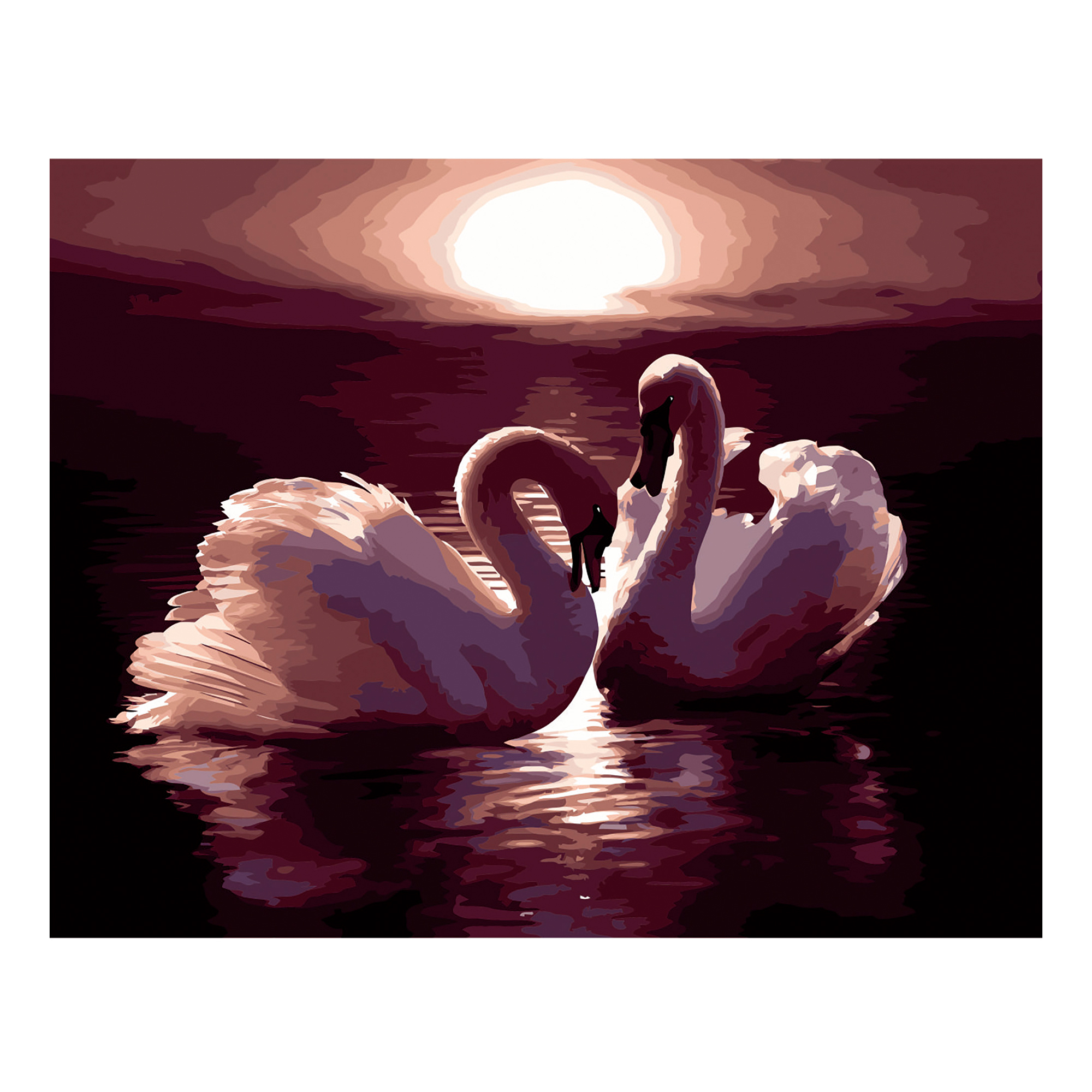 Картина за номерами "Закохані лебеді" на кольоровому фоні, розміром 40х50см, термопакет, ТМ Стратег, Україна