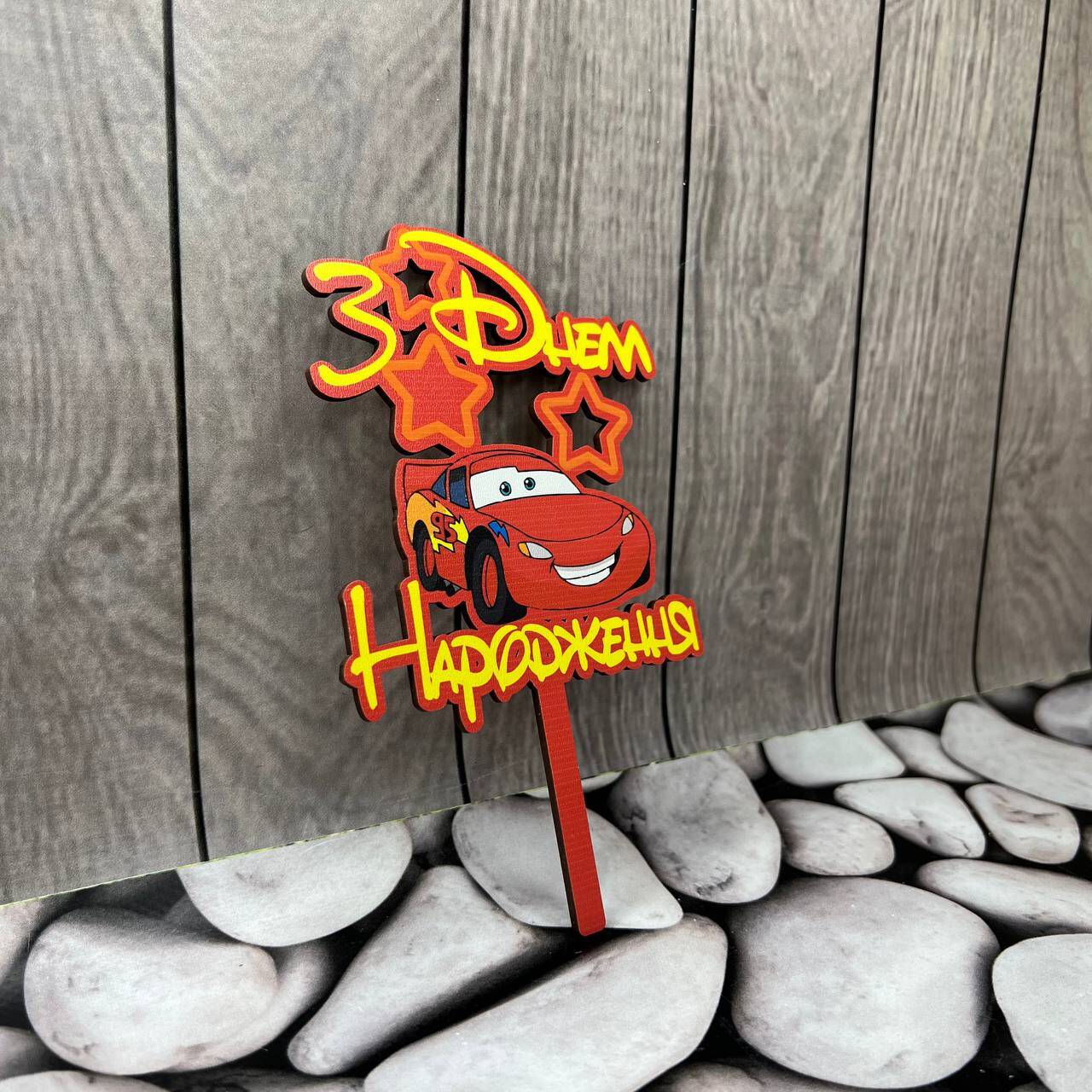 Топпер дітячий "Маквін" З Днем народження, дерев'яний, пак. 18*14см