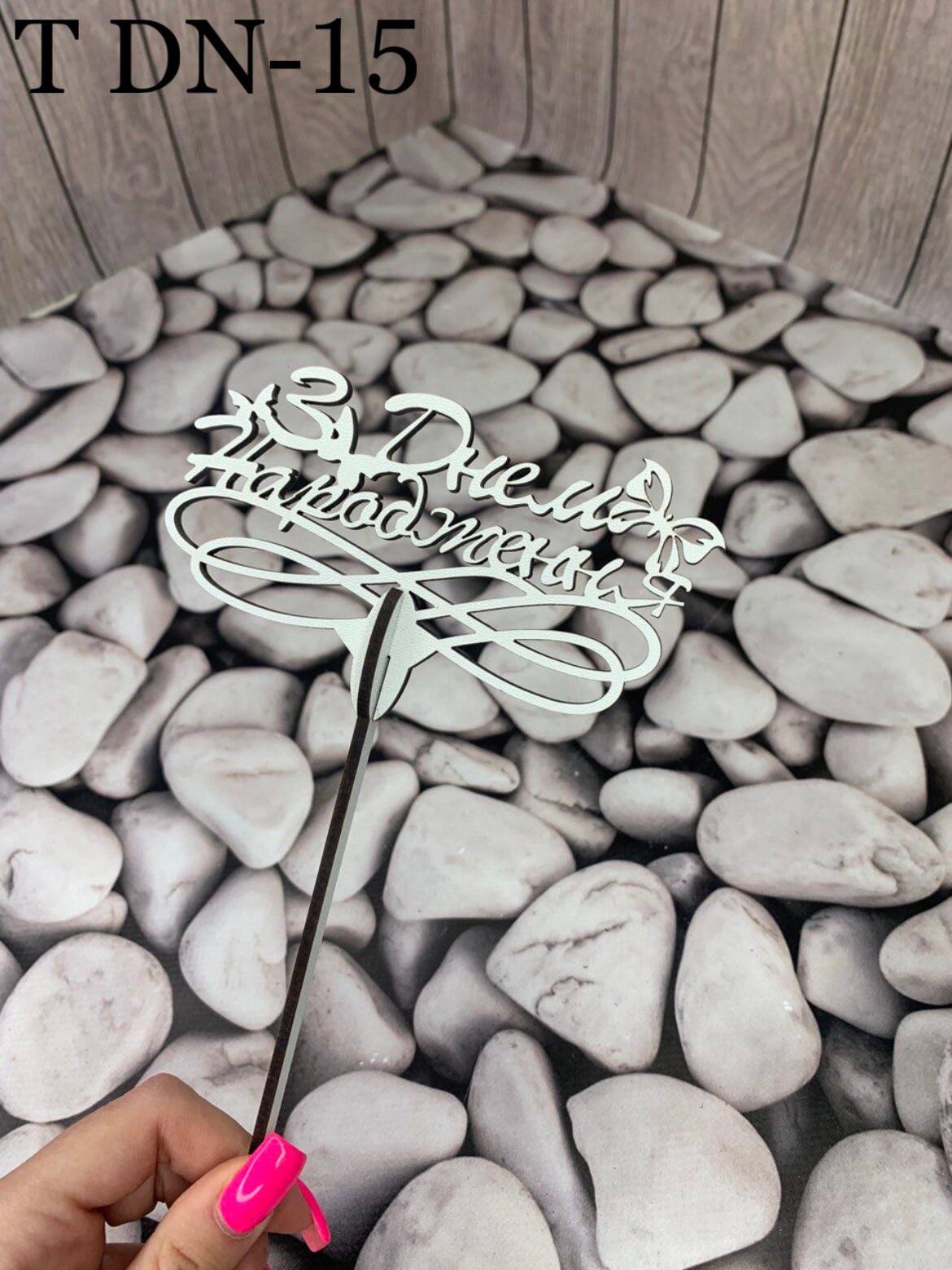 Топпер дерев'яний "З Днем Народження" торт, пак. 15*12см