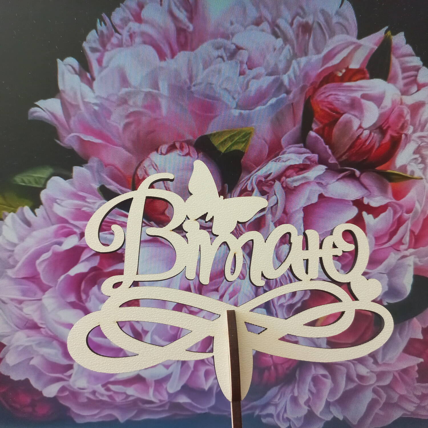 Топпер дерев'яний Вітаю метелик, пак. 15*12см