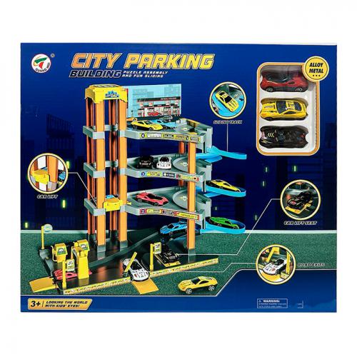 Парковка 3 металопластикових машинки, звук, підсвічування, механічний ліфт, 4 поверхи, ігрове поле, масштаб 1:64, в кор. (16шт/2)