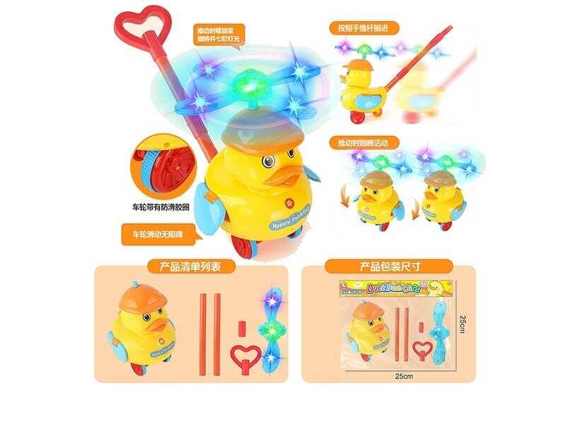 Каталка "Каченя", підсвічування, дзвоник, на паличці, пак. 25*20см (72шт)