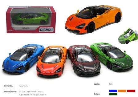 Машина метал. "Kinsmart" "McLaren 720S" інерц., 12см, відкрив. двері, 4 кольори, в кор. 16*7*8,5см (24шт)