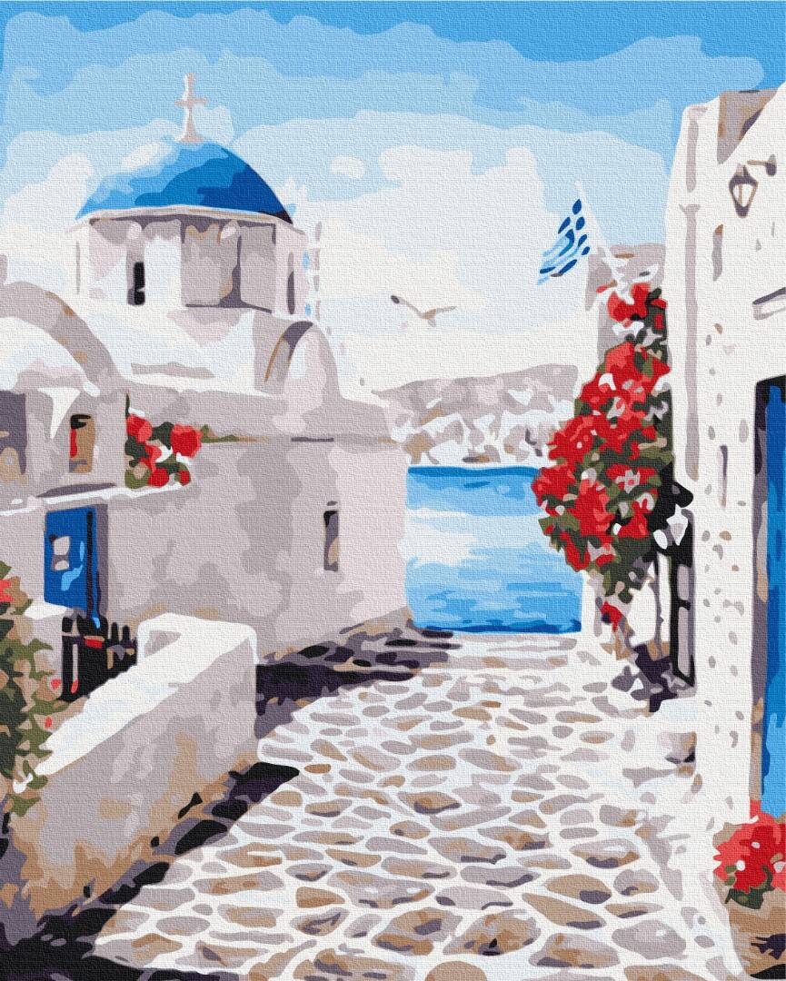 Картина за номерами Вулиця Санторіні, в термопакете 40*50см, ТМ Brushme, Україна