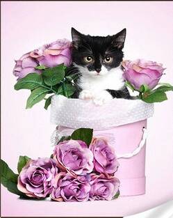 Алмазна мозаїка Кошеня з квітами 30х40см квадратні каміння стрази, термопакет, ТМ Стратег, Україна