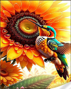 Алмазна мозаїка Колібрі в соняшниках 30х40см круглі каміння стрази, термопакет, ТМ Стратег, Україна