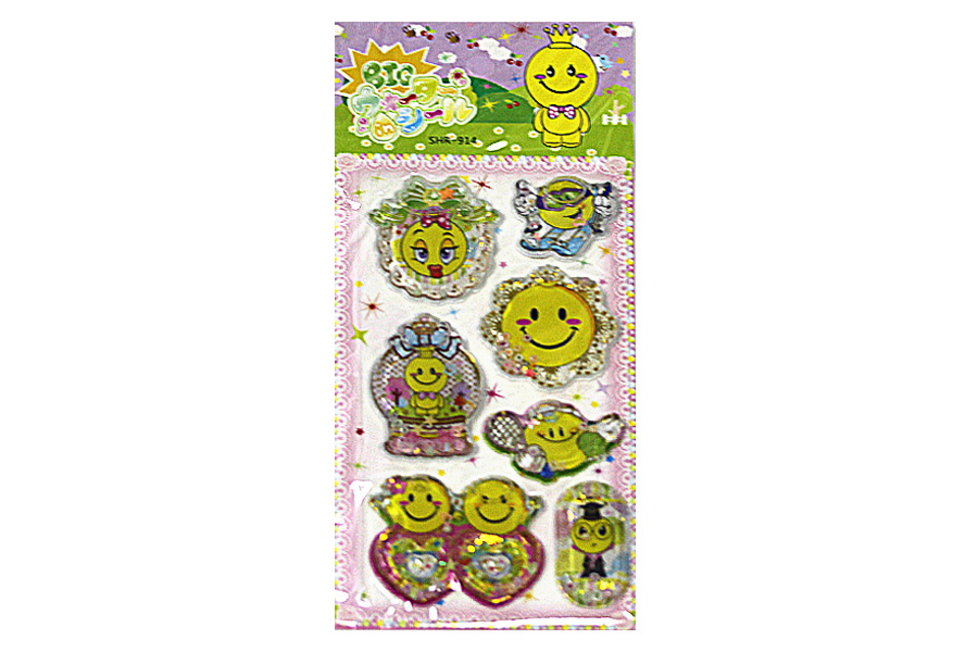 Наклейка з гелем та глітером, 8,5*19см Смайли (12шт/уп)