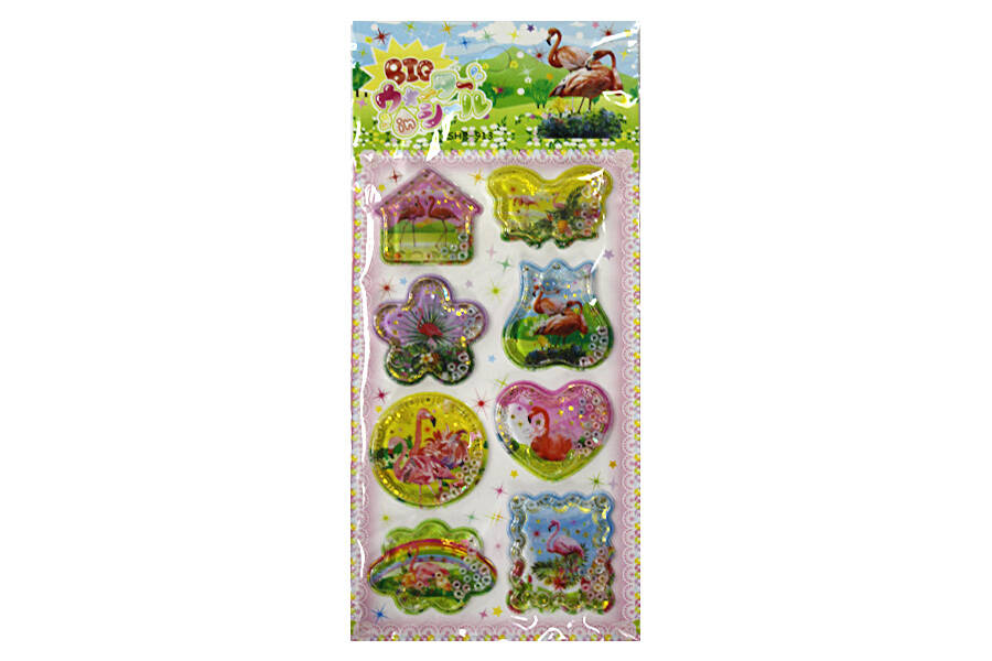 Наклейка з гелем та глітером, 8,5*19см Фламінго (12шт/уп)