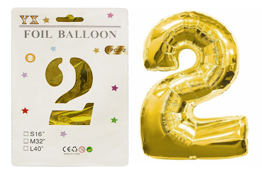 Кулька цифра 45см, в індивідуальній упаковці, золото, пак. 20*14см