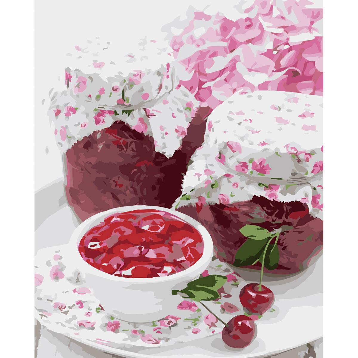 Картина за номерами "Вишневий джем" з лаком та рівнем, в термопакеті 40х50см, ТМ Стратег, Україна