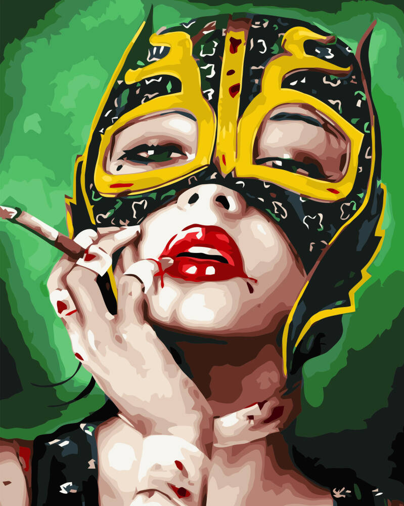 Картина за номерами "Дівчина у масці" з лаком та рівнем, в термопакеті 40х50см, ТМ Стратег, Україна