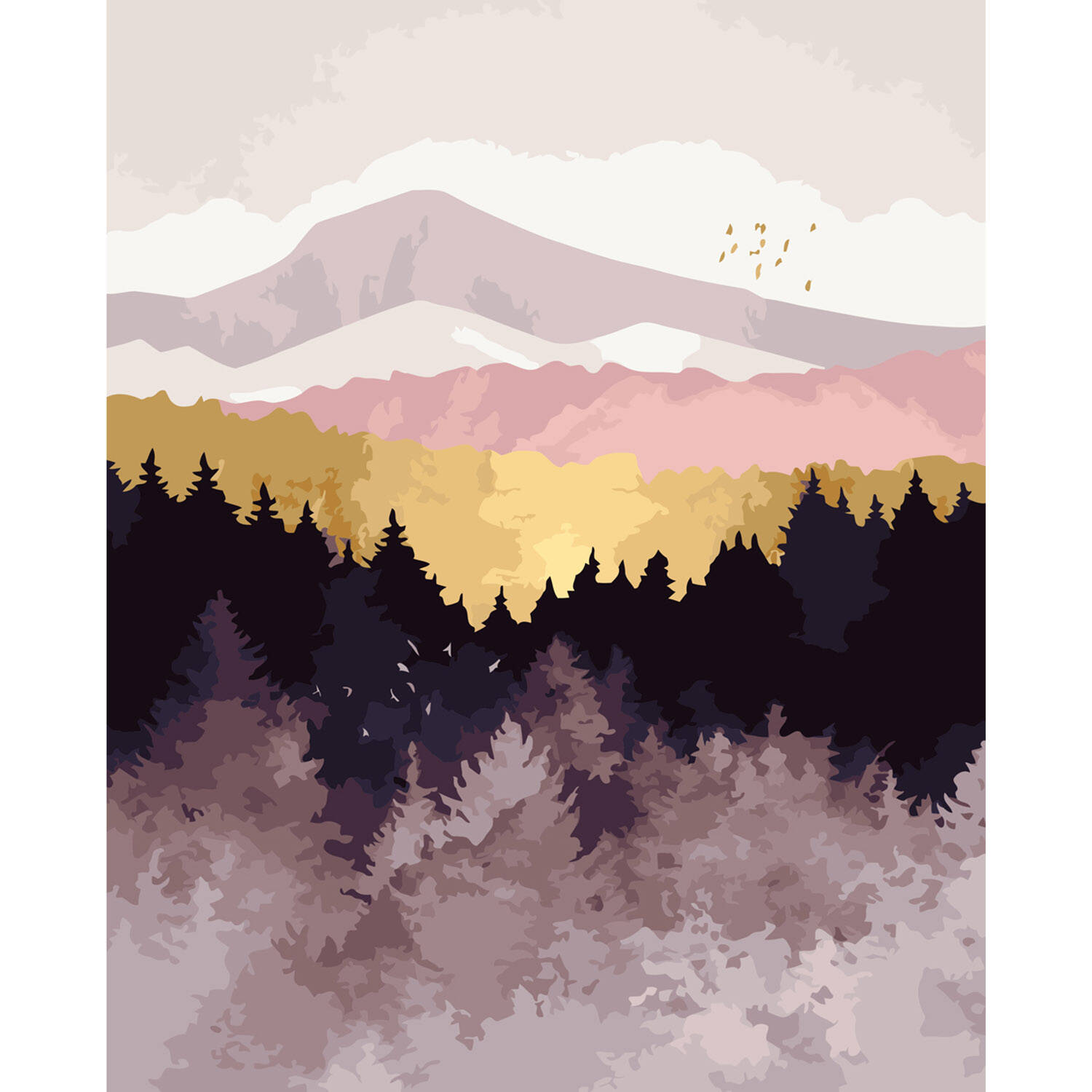 Картина за номерами "Світанок у гор 2" ПРЕМІУМ, з лаком та рівнем, в термопакеті 40х50см, ТМ Стратег, Україна