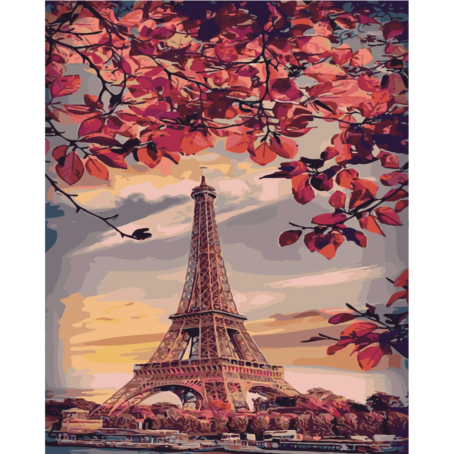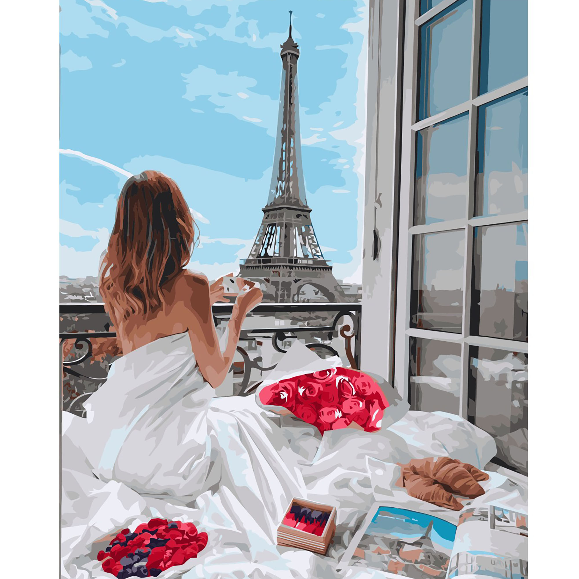 Картина за номерами "Ранок в Парижі" на кольоровому фоні, розміром 40х50см, термопакет, ТМ Стратег, Україна