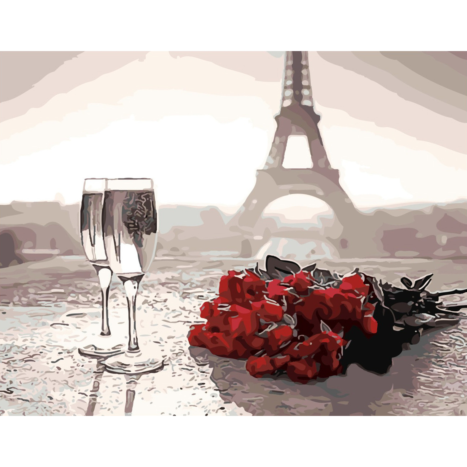 Картина за номерами "Троянди в Парижі" на кольоровому фоні, розміром 40х50см, термопакет, ТМ Стратег, Україна