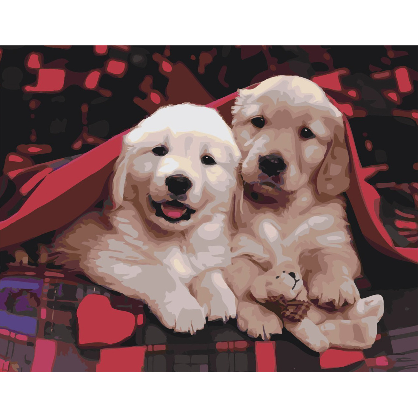 Картина за номерами "Пара цуценят" на кольоровому фоні, розміром 40х50см, термопакет, ТМ Стратег, Україна