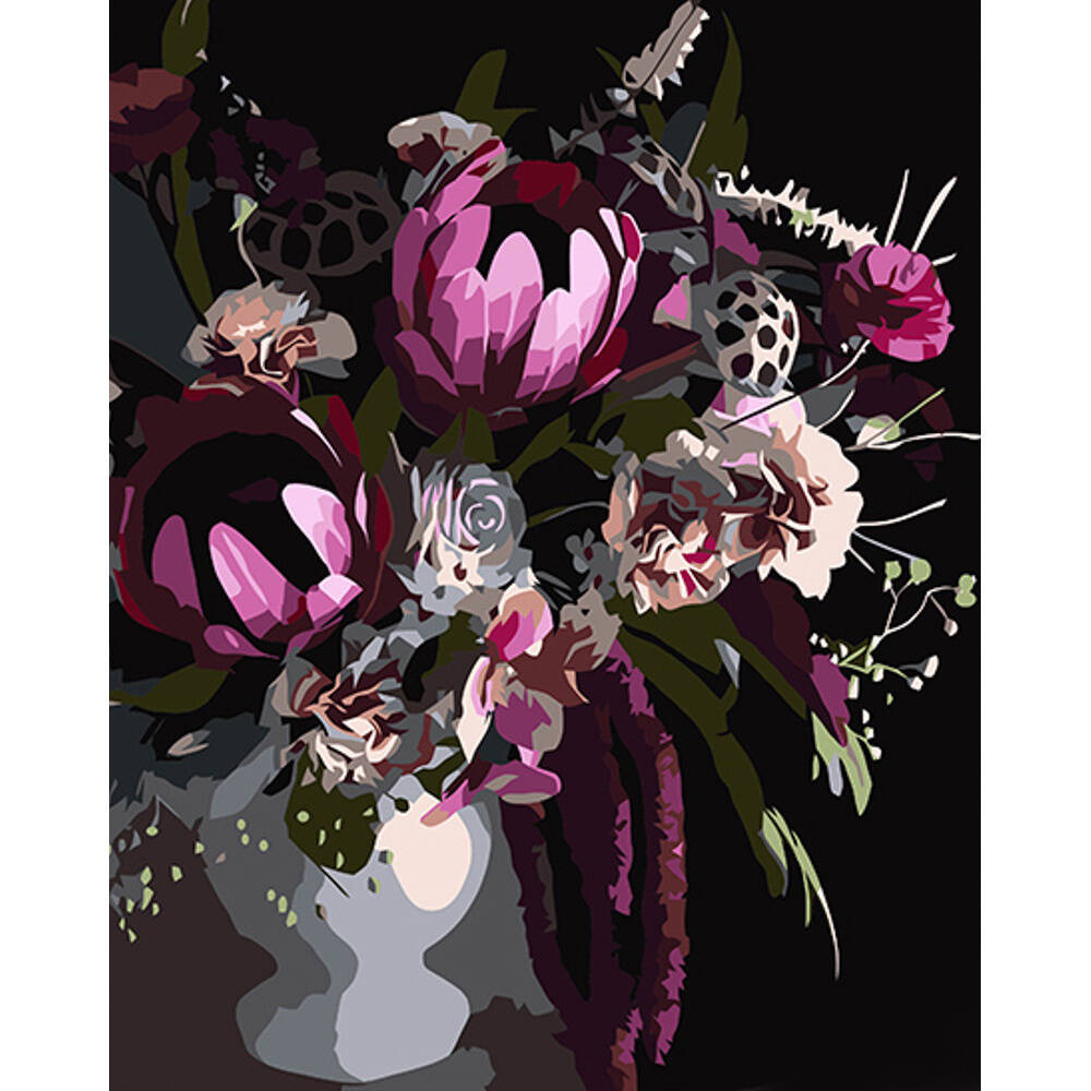 Картина за номерами Ніжний букет на чорному фоні 40х50см, в термопакеті, ТМ Стратег, Україна