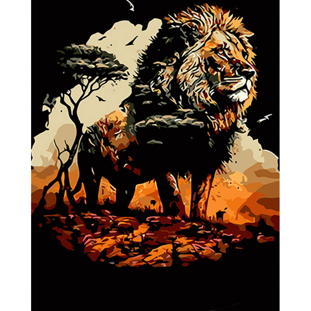 Картина за номерами Король лев на чорному фоні 40х50см, в термопакеті, ТМ Стратег, Україна
