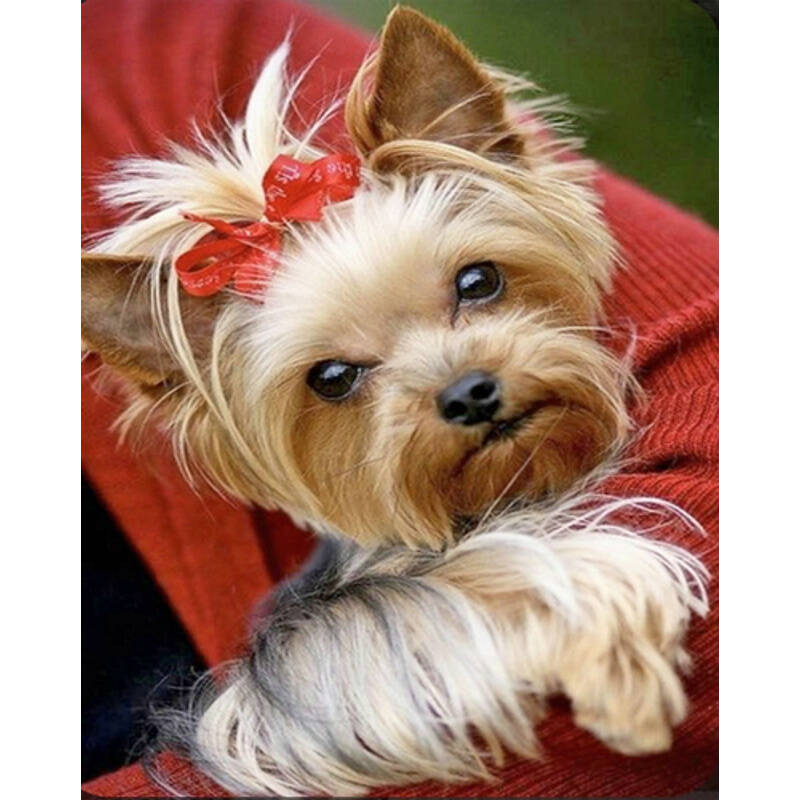 Алмазна мозаїка Йорк з червоним бантиком на рамці розміром 40х50см, в кор. 51*43*3см, ТМ Стратег, Україна