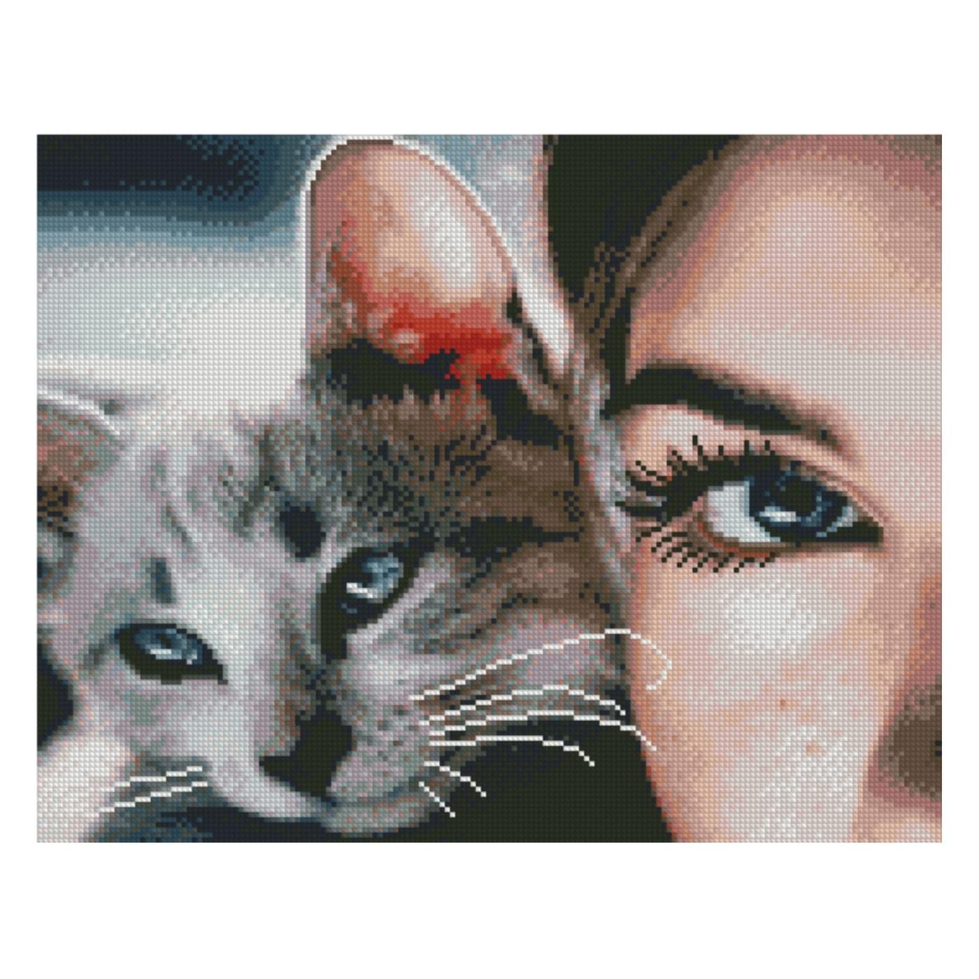 Алмазна мозаїка Кішка-друг, 40х50см круглі каміння-стрази, в кор. 51*43*3см, ТМ Стратег, Україна