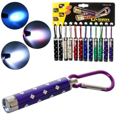 Ліхтарик 7см, брелок, світло, лазер, батар., ЦІНА ЗА УП. 12ШТ, (6кол) на листі, в пак. 18*18*1см (240шт)