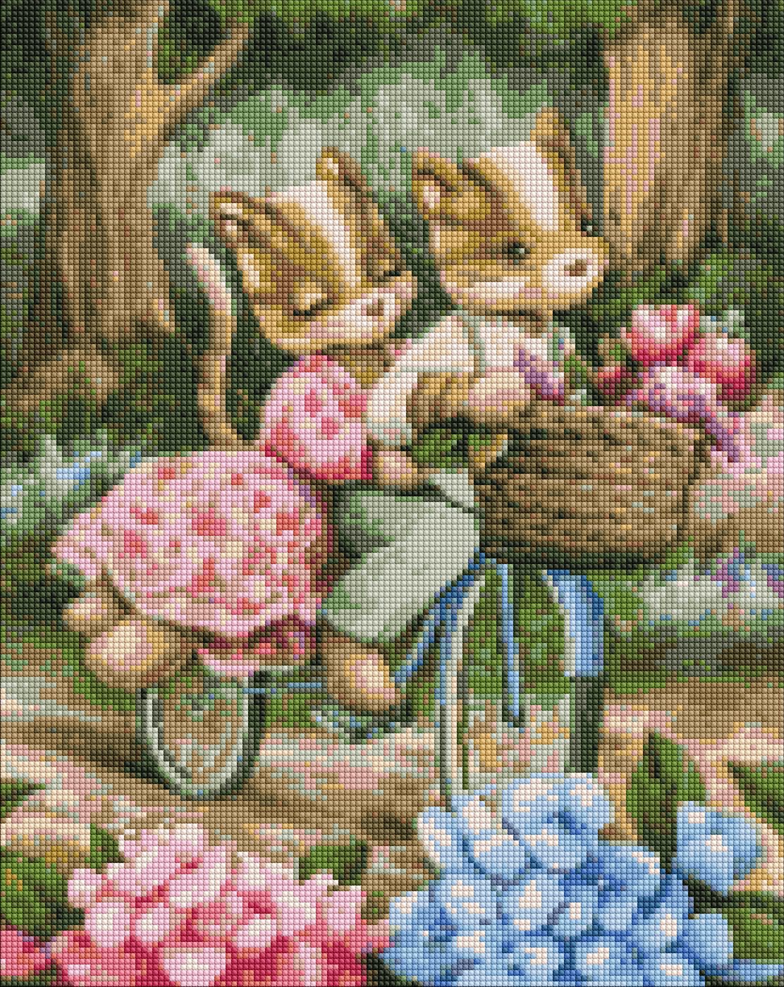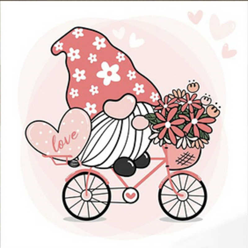 Алмазна мозаїка Гномик з квітами на велосипеді 30х30см круглі каміння-стрази, в кор. 31*31*2,5см, ТМ Стратег, Україна