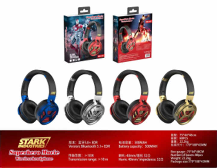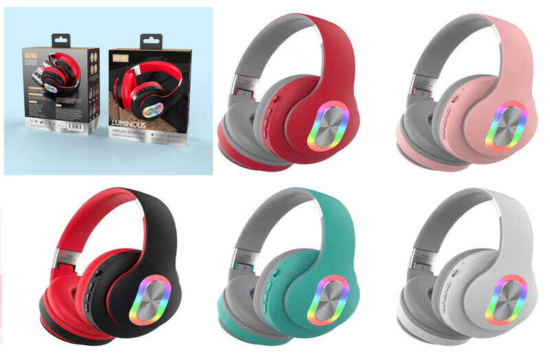 Навушники 5 видів, bluetooth-під’єднання, слот для карти пам’яті, перемикання пісень, мікрофон, підсвічування, складаються, в кор. 20*20*8см (60шт)