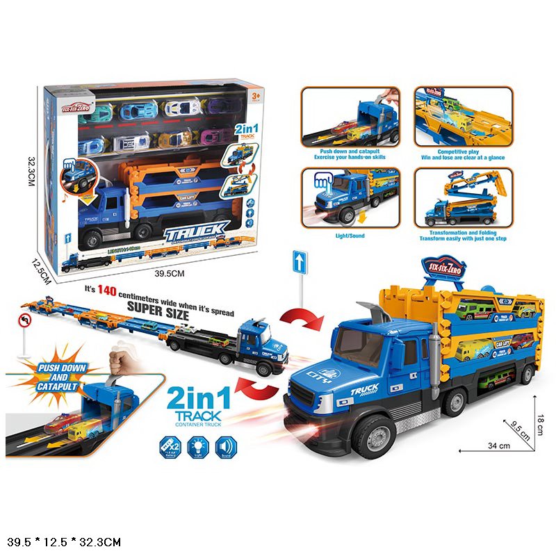 Трейлер бат. 2 види, світло, звук, машинки у наборі, в кор. 39,5*12,5*32,3см (18шт/2)