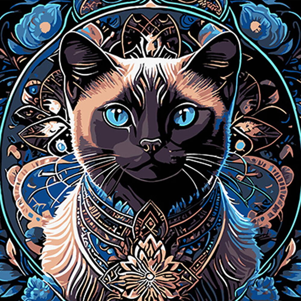 Картина за номерами Сіамська кішка у мандалі на чорному фоні 30х30см, термопакет, ТМ Стратег, Україна