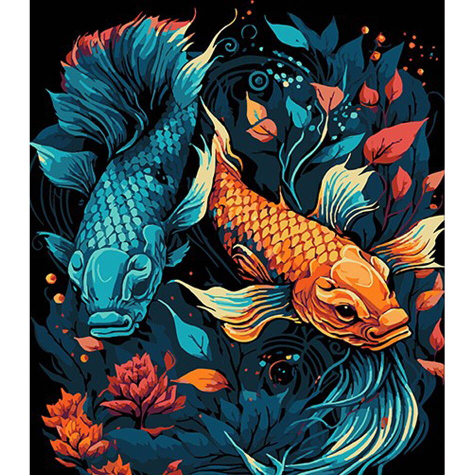 Картина за номерами Символічний образ риб на чорному фоні 40х40см, термопакет, ТМ Стратег, Україна