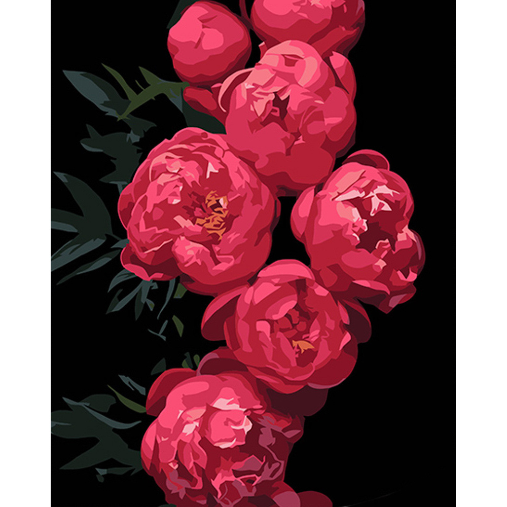 Картина за номерами Рожеві півонії на чорному фоні 40х50см, термопакет, ТМ Стратег, Україна