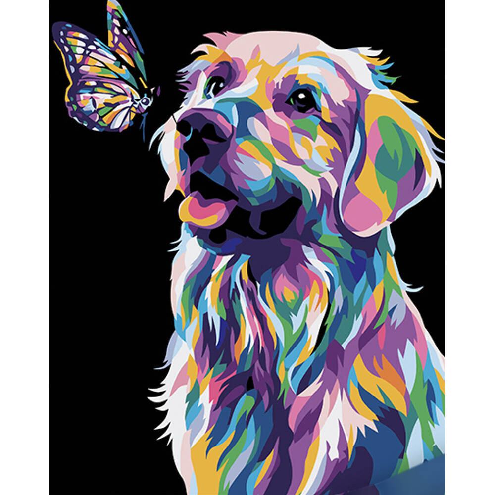 Картина за номерами Поп-арт собака з метеликом на чорному фоні 40х50см, термопакет, ТМ Стратег, Україна