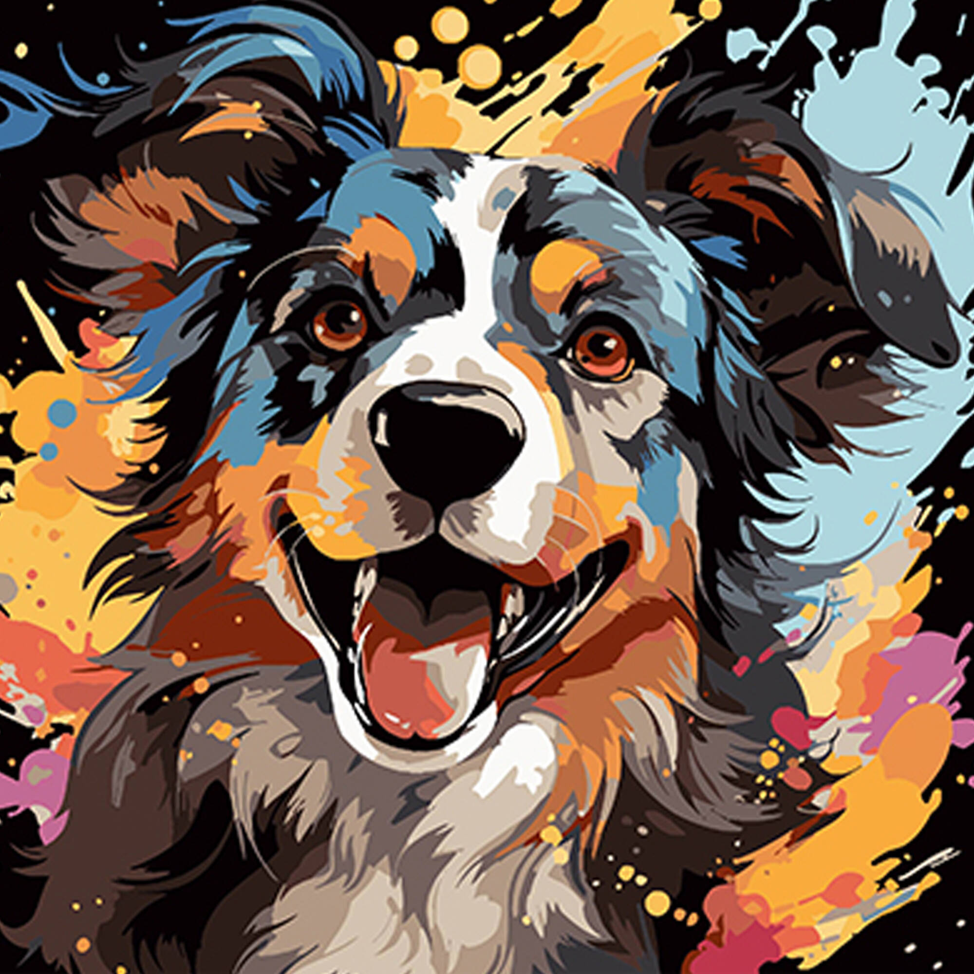 Картина за номерами Смішний радісний пес на чорному фоні 40х40см, термопакет, ТМ Стратег, Україна