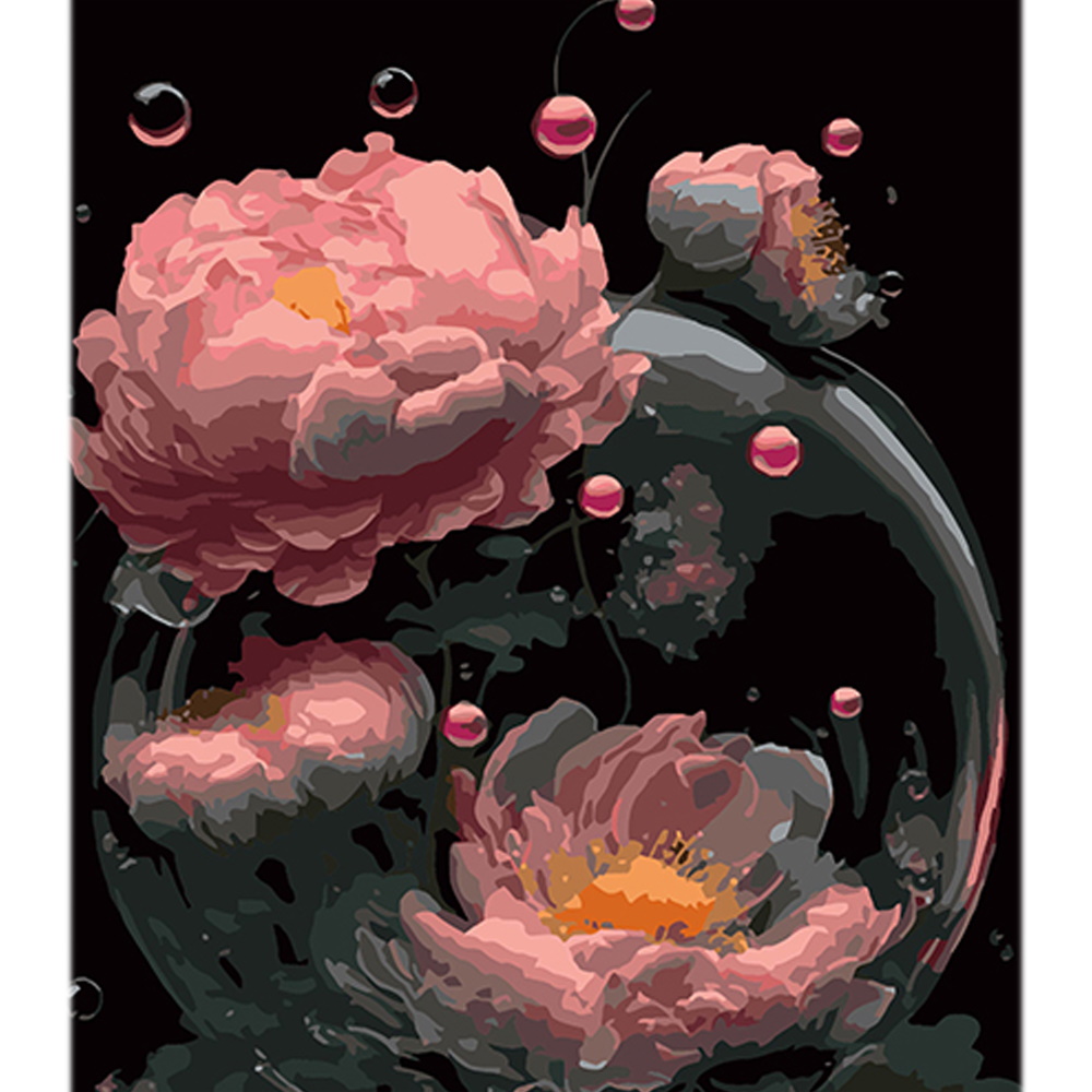 Картина за номерами Півонії в водяному світі на чорному фоні 40х50см, термопакет, ТМ Стратег, Україна