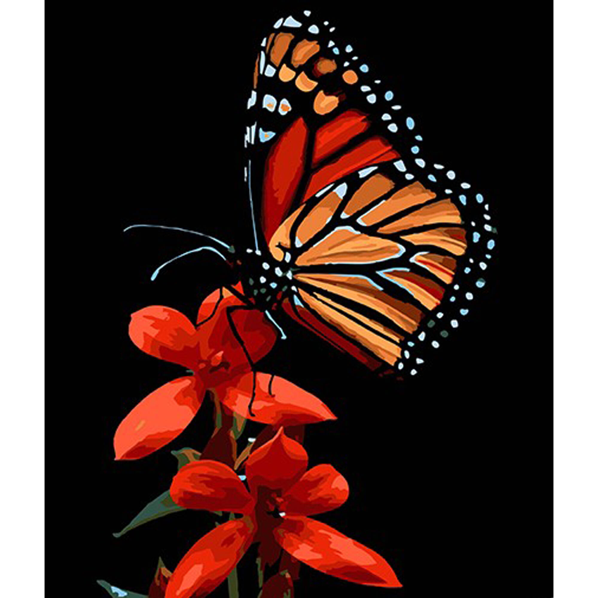 Картина за номерами Краса метелика на червоному цвіті на чорному фоні 30х40см, термопакет, ТМ Стратег, Україна
