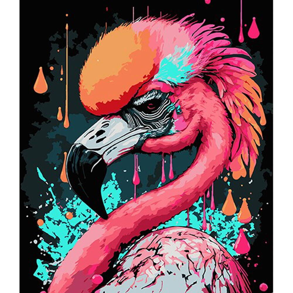 Картина за номерами Елегантний фламінго на чорному фоні 40х50см, термопакет, ТМ Стратег, Україна
