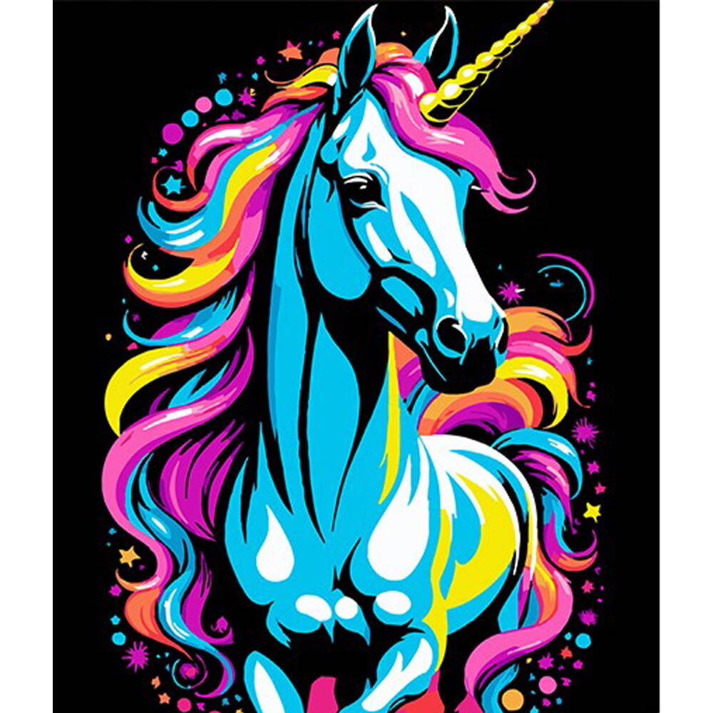 Картина за номерами Казковий єдиноріг на чорному фоні 30х40см, термопакет, ТМ Стратег, Україна