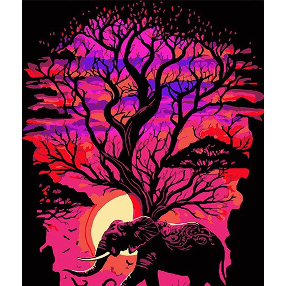Картина за номерами Слон на сафарі у рожевих відтінках на чорному фоні 30х40см, термопакет, ТМ Стратег, Україна
