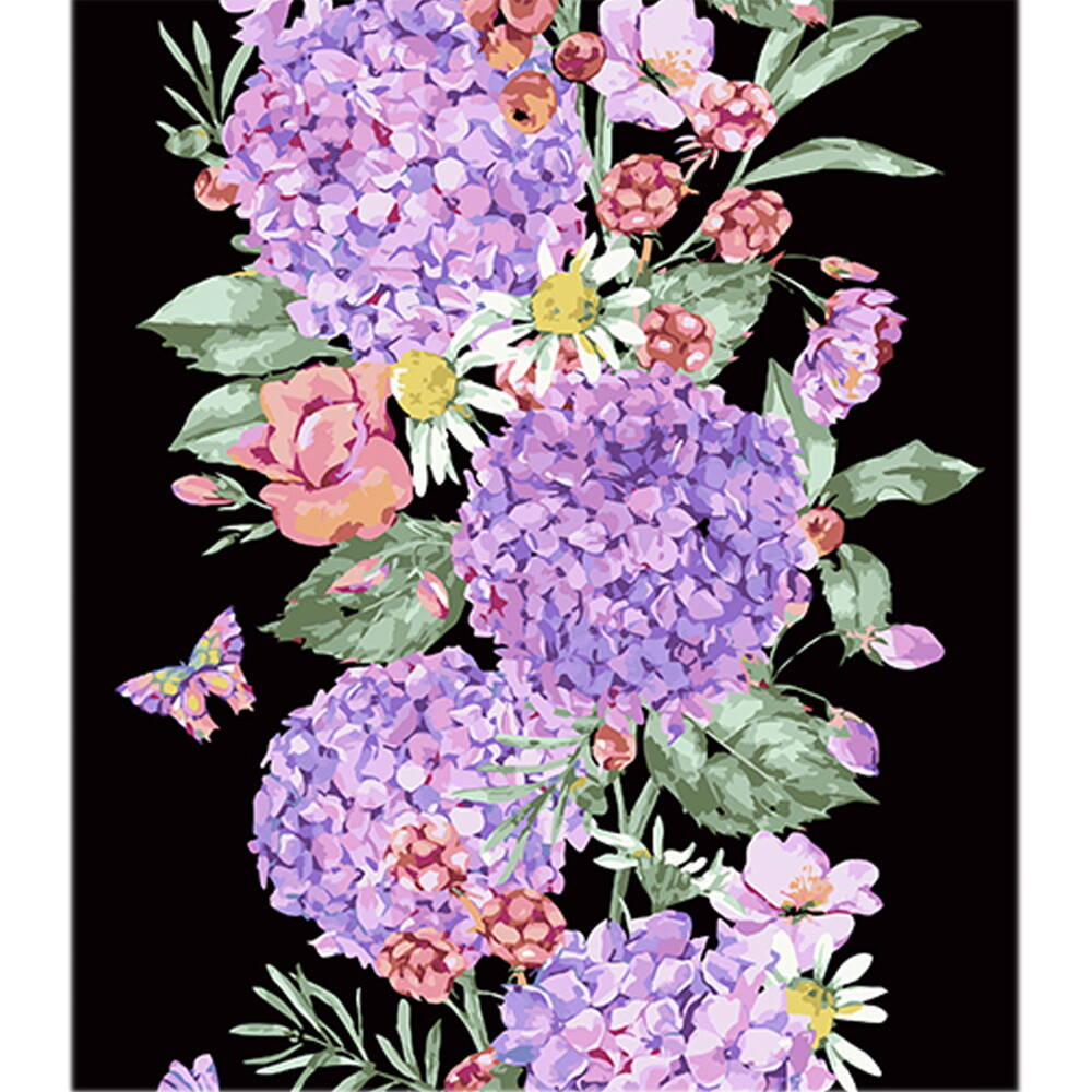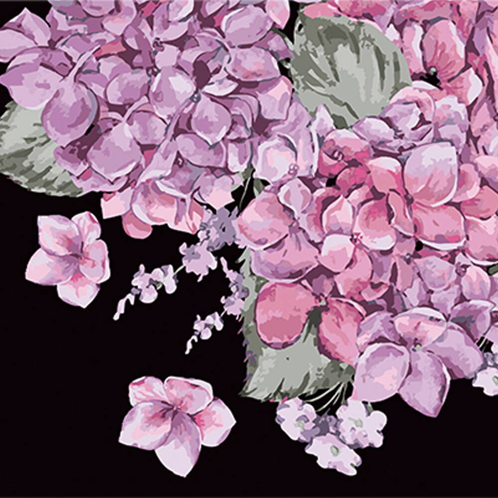 Картина за номерами Цвітіння гортензій на чорному фоні 40х40см, термопакет, ТМ Стратег, Україна